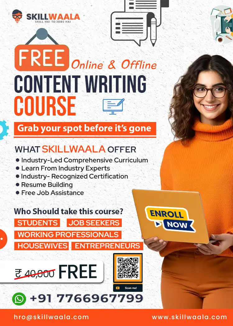 You must be wondering what’s different with the content writing course that we provide, well if you read the above lines carefully you would have got a glimpse of why Skillwaala is offering the best content writing course in Jaipur. Yes, it ain’t like SkilWaala is offering the complete content writing course for free.